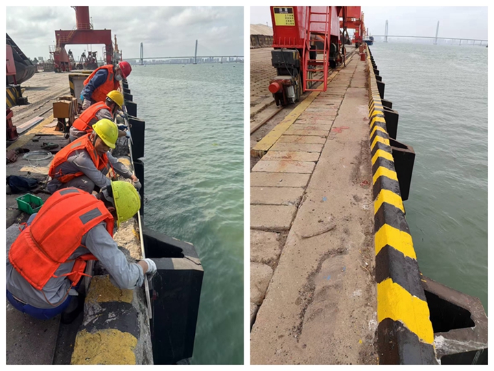 在日常安全巡查中,發(fā)現(xiàn)港口經(jīng)營(yíng)公司萬噸級(jí)碼頭前沿?cái)r水坎,出現(xiàn)局部混凝土損壞、鋼筋裸露的情況,若不及時(shí)修復(fù),將對(duì)海洋安全產(chǎn)生環(huán)境污染。按常規(guī)流程,該項(xiàng)修復(fù)工作費(fèi)用高、工期長(zhǎng)且需外委專業(yè)施工隊(duì),但公司黨支部在“書記項(xiàng)目”推進(jìn)會(huì)上明確要求:“在確保安全與質(zhì)量的前提下,能自主完成的絕不外委!”港口經(jīng)營(yíng)公司黨支部書記劉芳芳主動(dòng)領(lǐng)題,牽頭組織黨員干部,集結(jié)涵蓋結(jié)構(gòu)工程、機(jī)械維修、安全管理等專業(yè)的黨員技術(shù)骨干,把“硬骨頭”變成“練兵場(chǎng)”。 “攔水坎修復(fù)要兼顧船舶靠泊時(shí)產(chǎn)生的擠壓碰撞力,混凝土配比、鋼筋加固都得精準(zhǔn)!秉h支部組織委員、副總經(jīng)理黎陽(yáng)生是港口經(jīng)營(yíng)公司技術(shù)“總工程師”,他帶著黨員維修組白天測(cè)量損壞面積、記錄鋼筋變形數(shù)據(jù),晚上研究修復(fù)技術(shù)規(guī)范,反復(fù)驗(yàn)算修復(fù)方案。為節(jié)省成本,他們翻遍倉(cāng)庫(kù)“淘”出閑置的高強(qiáng)度螺紋鋼,自主切割焊接;利用碼頭現(xiàn)有的混凝土攪拌設(shè)備,按實(shí)驗(yàn)配比調(diào)配修補(bǔ)材料,經(jīng)過多次試驗(yàn),最終確定“基層清理+鋼筋網(wǎng)加固+分層澆筑+防水警示涂層”的修復(fù)工藝。