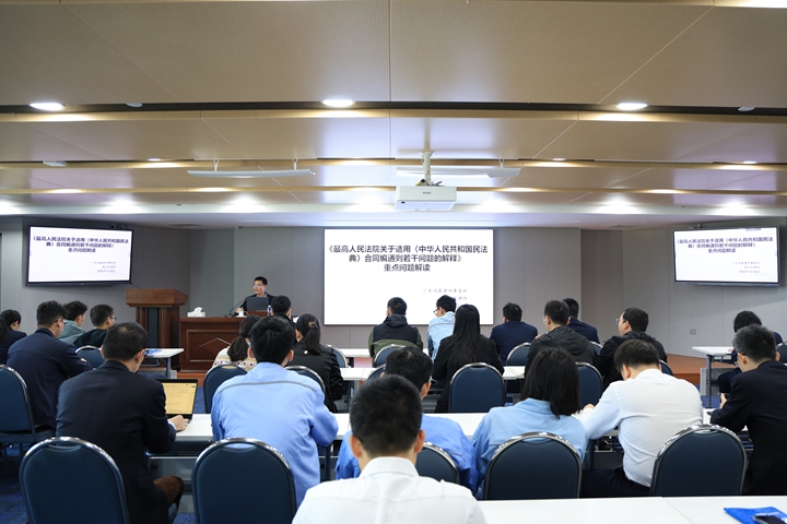 為深入貫徹落實“憲法進(jìn)企業(yè)”主題普法工作部署,弘揚民法典精神,扎實推進(jìn)國有企業(yè)法治建設(shè),12月8日,茂名港集團(tuán)組織開展了“民法典合同編司法解釋解讀與應(yīng)用”專題法律講座。講座特邀廣東鴻基律師事務(wù)所合伙人、黨支部書記梁信慶律師擔(dān)任主講,集團(tuán)機關(guān)各部室及下屬企業(yè)50余名干部職工參加學(xué)習(xí)。