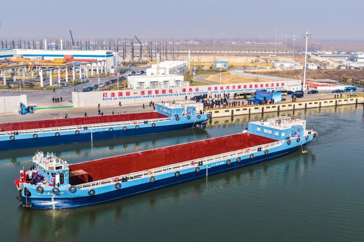本次儀式交付的首批5艘純電動(dòng)貨船及新簽訂的50艘訂單船舶,將全部投入京杭運(yùn)河流域,構(gòu)成山東省首條實(shí)現(xiàn)常態(tài)化、規(guī);\(yùn)輸?shù)募冸妱?dòng)貨船綠色航線,覆蓋長三角至華北核心物流通道,單船年運(yùn)力預(yù)計(jì)突破50萬噸。 山東新能船業(yè)有限公司董事長張強(qiáng)介紹,該船隊(duì)創(chuàng)新應(yīng)用“船電分離”商業(yè)模式及集裝箱式換電技術(shù),單船載貨量達(dá)2000噸,一次換電即可滿足核心運(yùn)輸需求,全程實(shí)現(xiàn)零排放、低噪音運(yùn)行。據(jù)測算,僅此批船舶全年即可減排二氧化碳超1300噸,環(huán)保效益斐然。 “此次交付的5艘多用途電船,搭載高容量箱式電源系統(tǒng),配套高壓大功率充換電設(shè)施,可實(shí)現(xiàn)15分鐘快速換電、270公里長效續(xù)航,成功構(gòu)建‘船-站-云’一體化商業(yè)閉環(huán)!睂幍聲r(shí)代決策顧問委員會(huì)副主任曾嶸表示。 濟(jì)寧能源集團(tuán)黨委書記、董事長張廣宇說,新能船業(yè)是濟(jì)寧能源集團(tuán)聯(lián)合寧德時(shí)代、中集集團(tuán)、中船集團(tuán)、武漢理工大學(xué)等共同打造的新能源船舶制造項(xiàng)目,可研發(fā)、設(shè)計(jì)、生產(chǎn)滿足不同應(yīng)用場景需求的內(nèi)河標(biāo)準(zhǔn)化船舶系列產(chǎn)品。截至目前累計(jì)簽約訂單180余艘,2025年下水船舶100艘、交付80艘。與法國達(dá)飛等企業(yè)合作建造的7艘新能源船成功出口至越南、坦桑尼亞、古巴、贊比亞等國家。